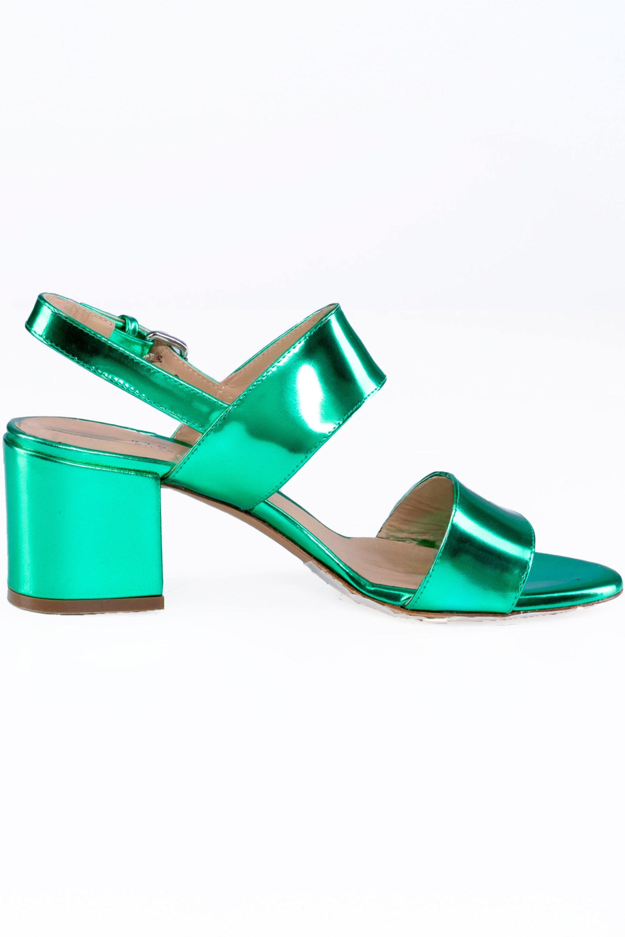 Sandalia taco cuadrado con dos tiras y correa en el tobillo charolado