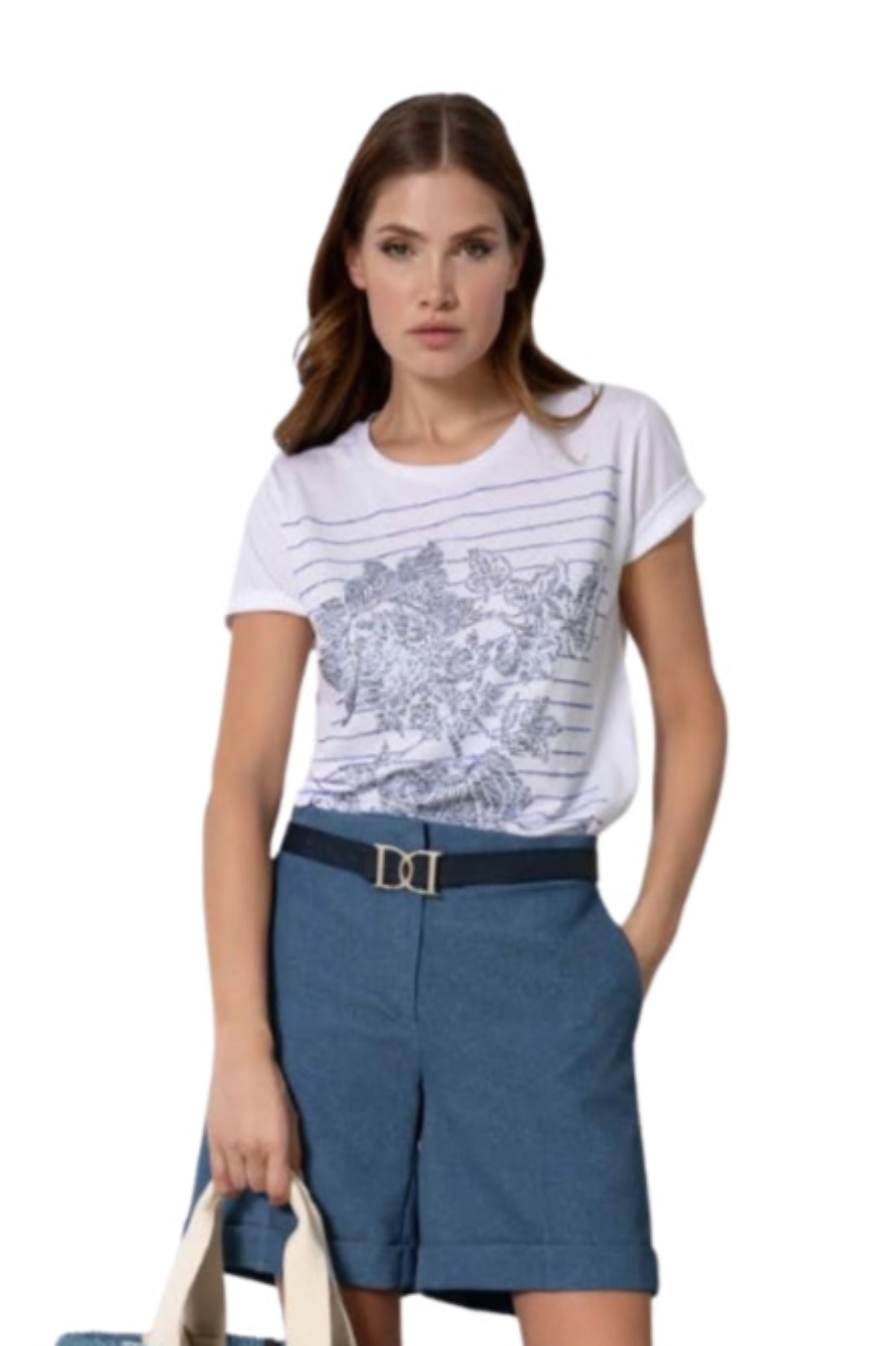 Polo, 100% algodón, estampado con pedrerÍa swarovski, motivo rayas y flor (especial colección Drei)