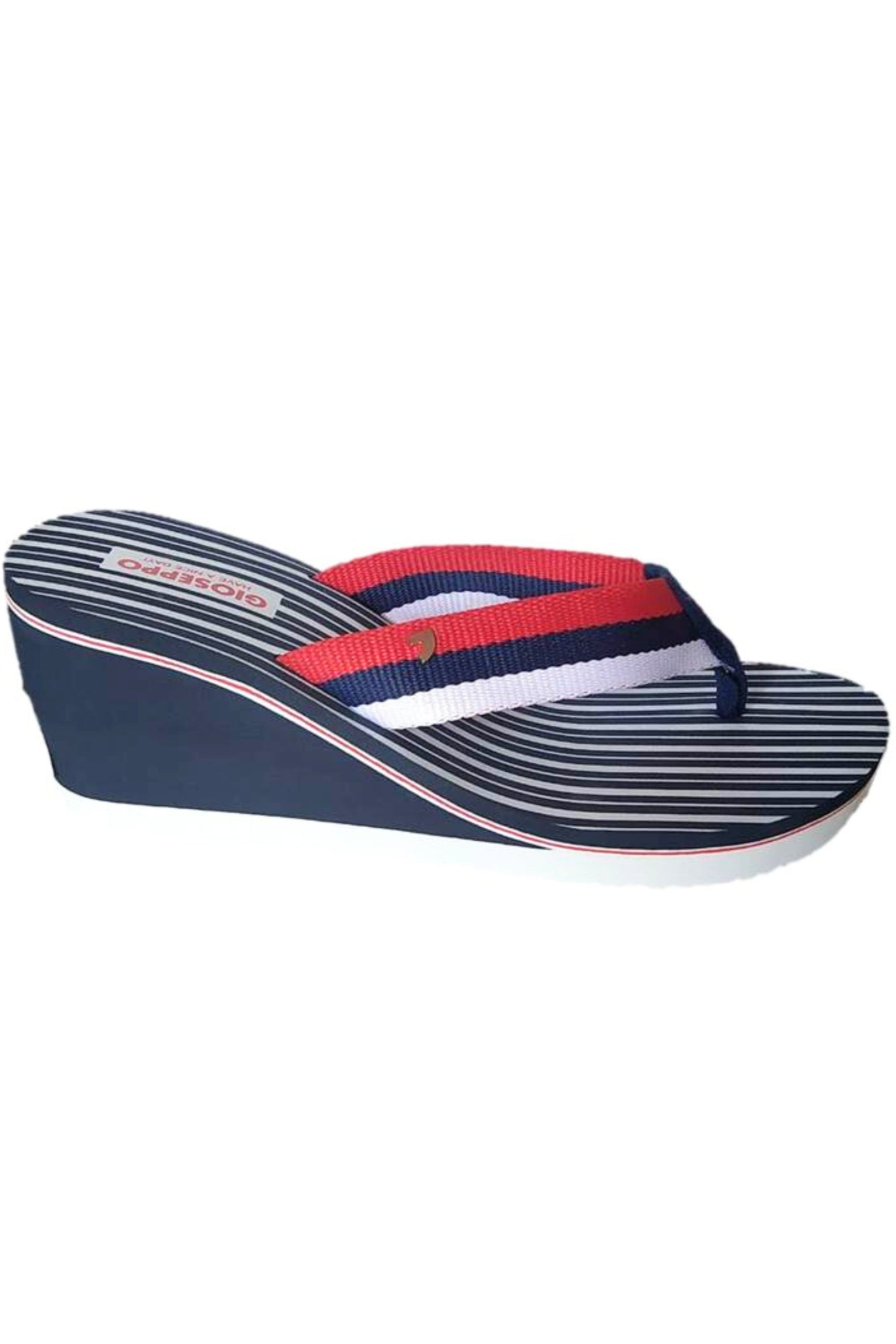 Sayonara alta con plataforma a rayitas y tira de cinta tricolor Azul , blanco y rojo