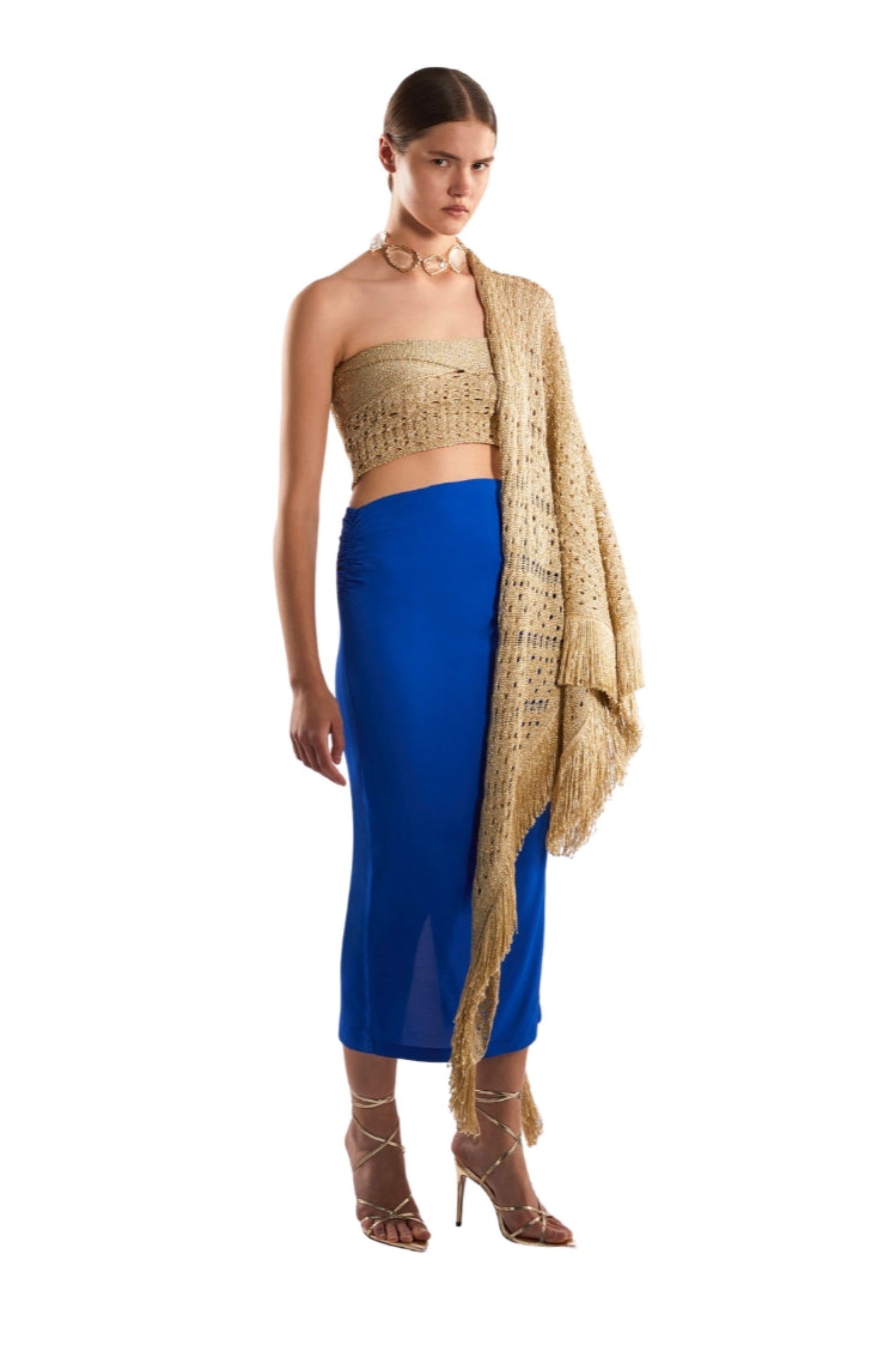 Chall de hilo viscosa con lurex, todo tejido tipo crochet con flecos.