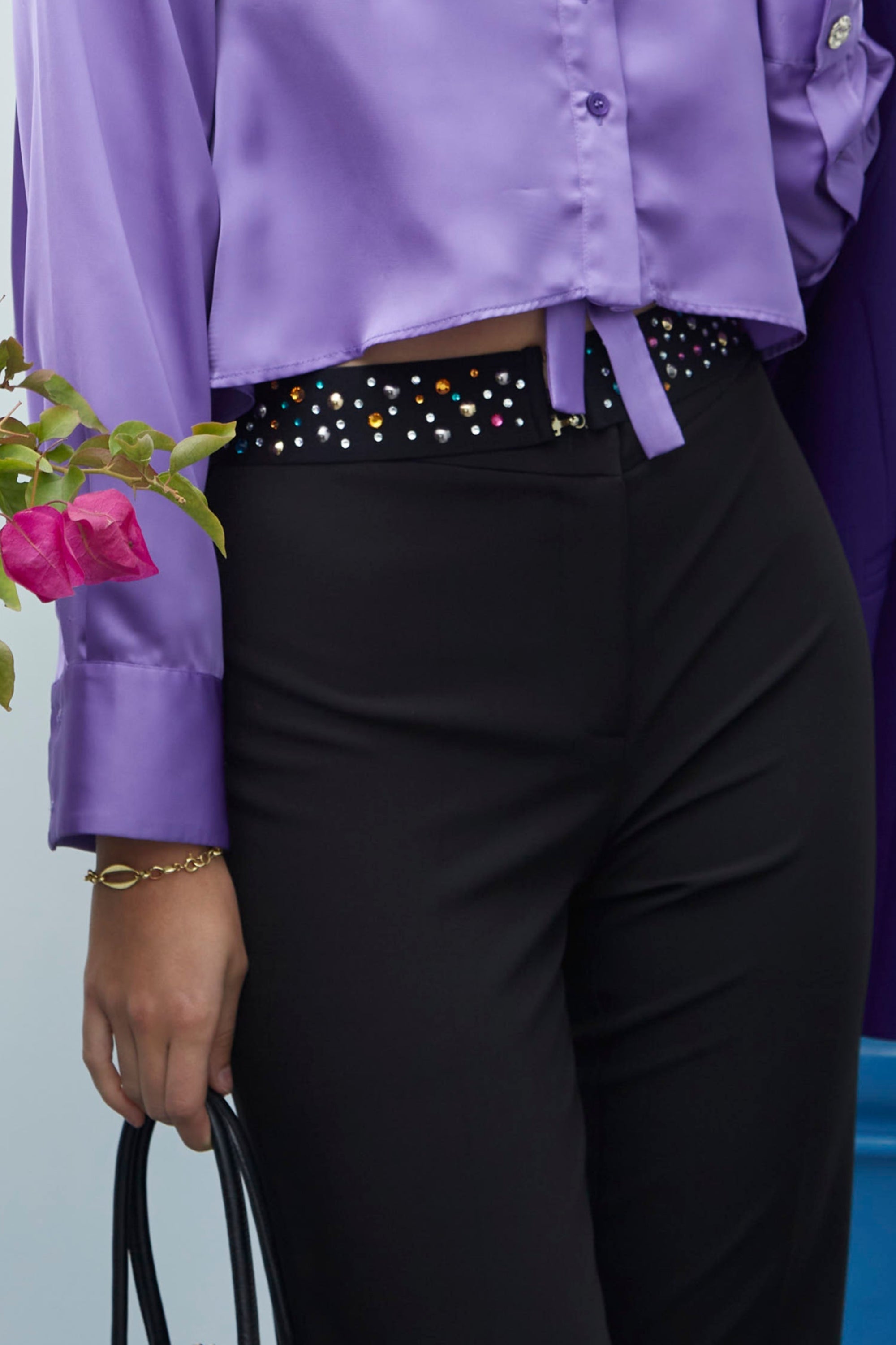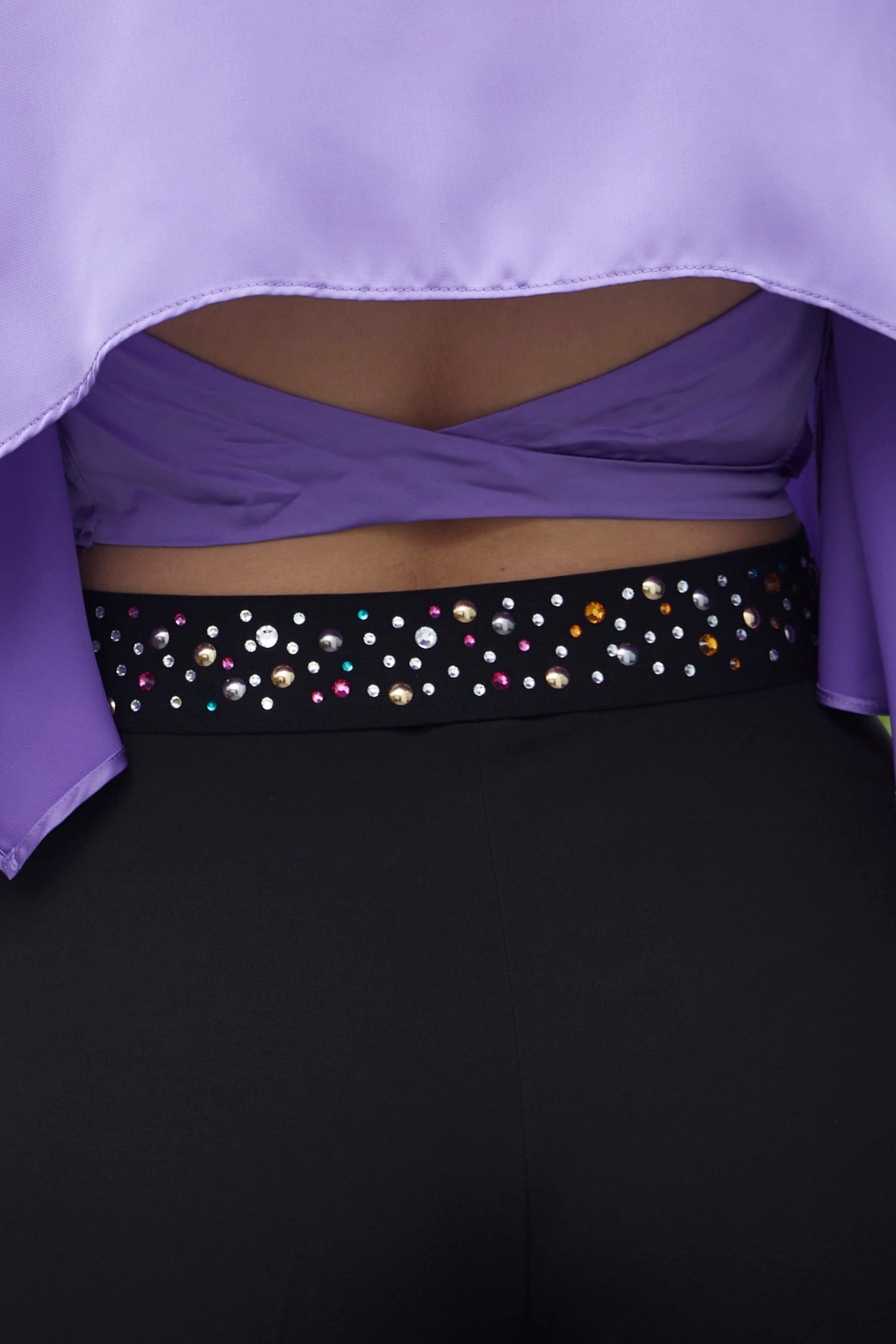 Cinturones de elastico negro con tres ebillas plateadas lleno de swaroskys de colores.