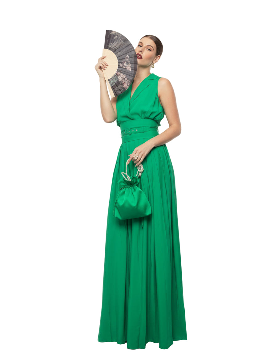 Enterizos de gasa crepe acetato con seda con parte de arriba corte blazer sin manga , cintura ancha con cinturón y piernas sueltas anchas plisada.