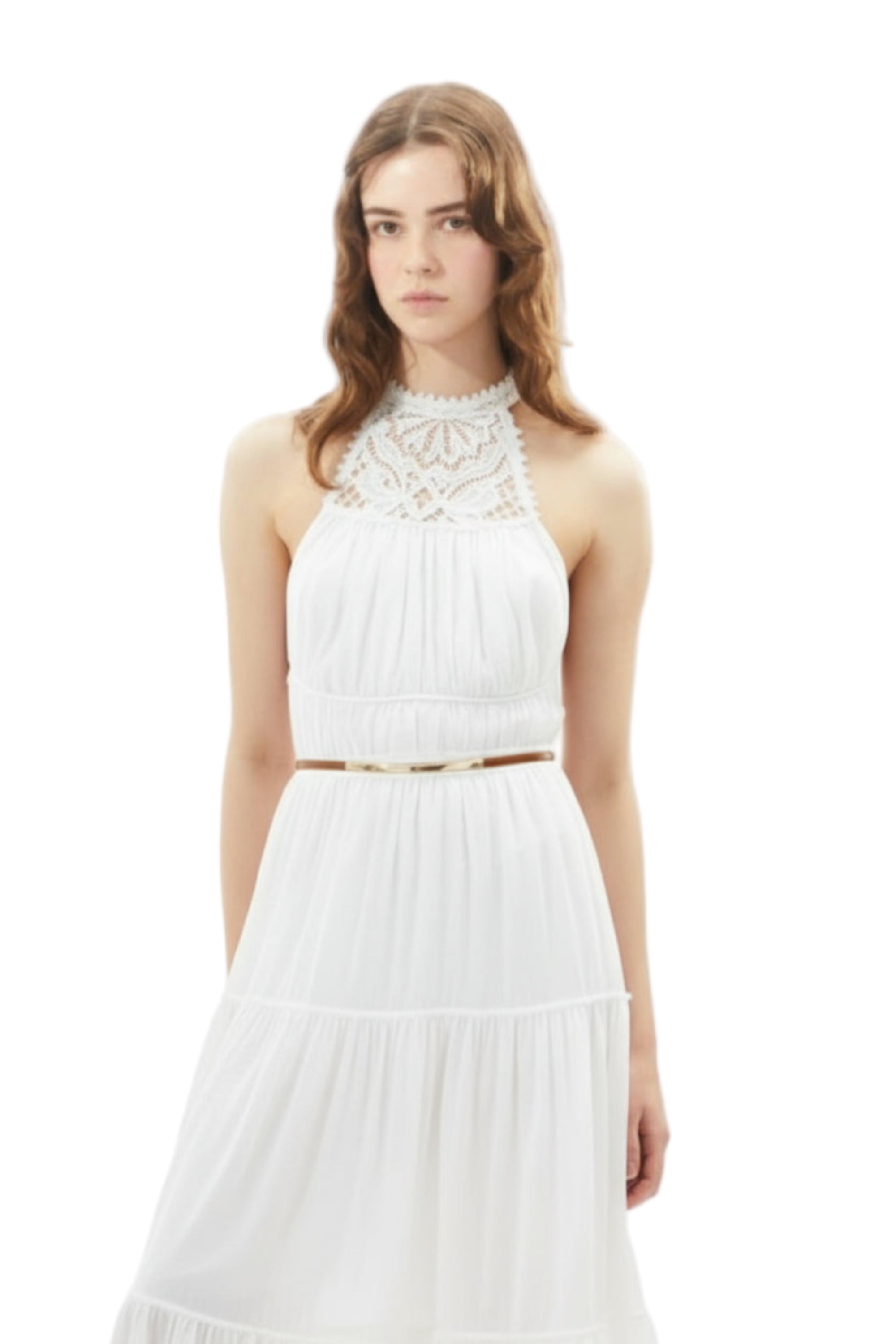Tops halter con faldon tres tiempos 100% algodón con aplique de bordado crochet en la parte alta.